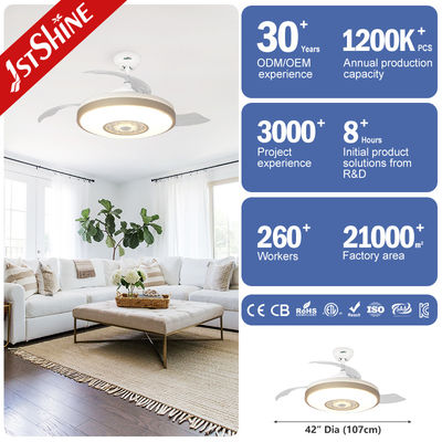 42インチのリビングルームの見えない天井扇風機は 夜光機能を持ち 同時にアプリ制御で RGB多色で色の変化もできます音楽を再生するために電話に接続することもできます..