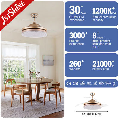 3 透明な刃 金色 LED ライト付きの現代的な引き上げ式天井扇風機