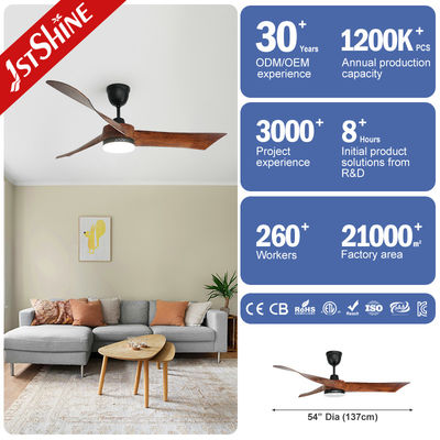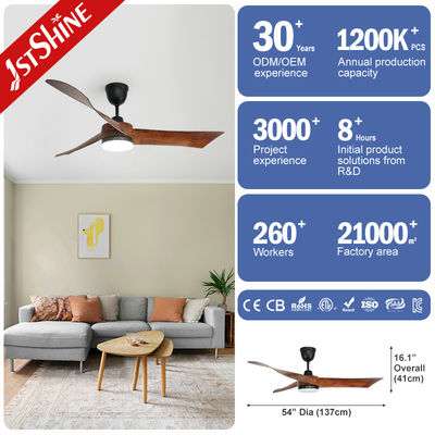 木製色 54 インチ LED 天井扇風機 3 リモコン付きプラスチックブレード
