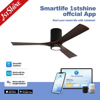 装飾用3枚天然木製ブレード フラッシュマウントLED Tuyaスマートシーリングファン、ライト付き