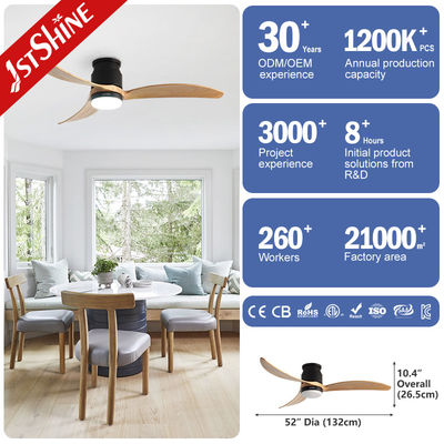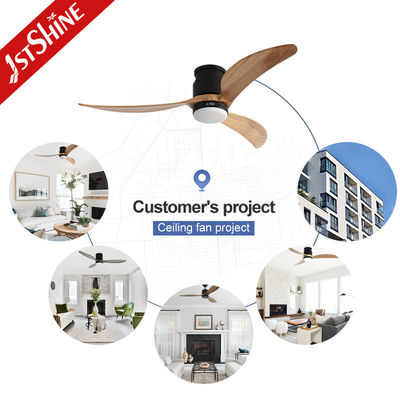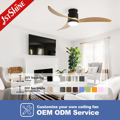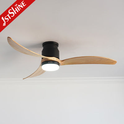 装飾用3枚天然木製ブレード フラッシュマウントLED Tuyaスマートシーリングファン、ライト付き