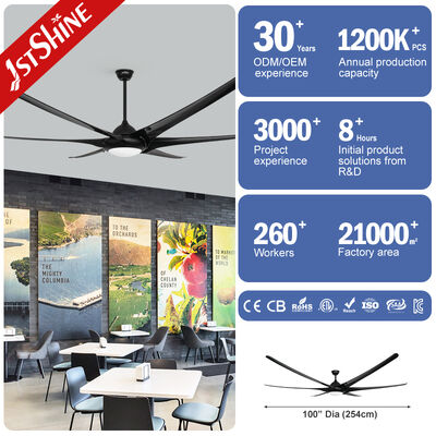 100 インチ シーリング ファンの洗練されたブラック仕上げと大胆なデザインは、現代の住宅や商業スペースに最適です。エネルギー効率の高いプラスチックブレードを備えたこのファンは、強力なエアフローを実現しながら、長期的な電気代の節約を保証します。